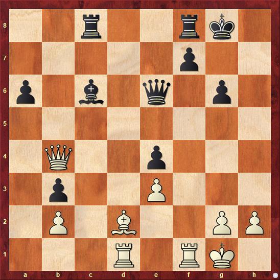 správné pokračování je 1.-Vxe1 2.Vxe1 Je2+ 3.Vxe2 Db1+, okamžité 1.-Je2+? prohrává pro 2.Vxe2 Vxe2 3.Dh6